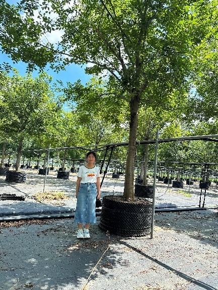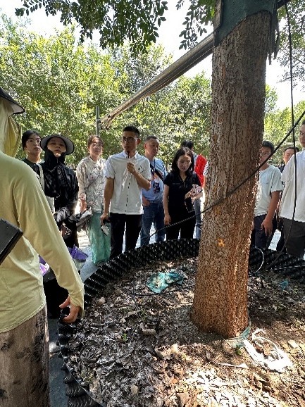 研讨会结束后,团队一行前往武汉市重要花卉企业开展调研。在负责人带领下,与基地销售团队交流,知悉了当前此类大型容器苗在不同领域的销售情况与市场需求前景,尤其是一些特色品种。团队一行仔细考察了园内从国外引进的‘天鹅绒紫薇’等特色花卉品种的生长适应性,以及本地优势品种的创新培育成果。
