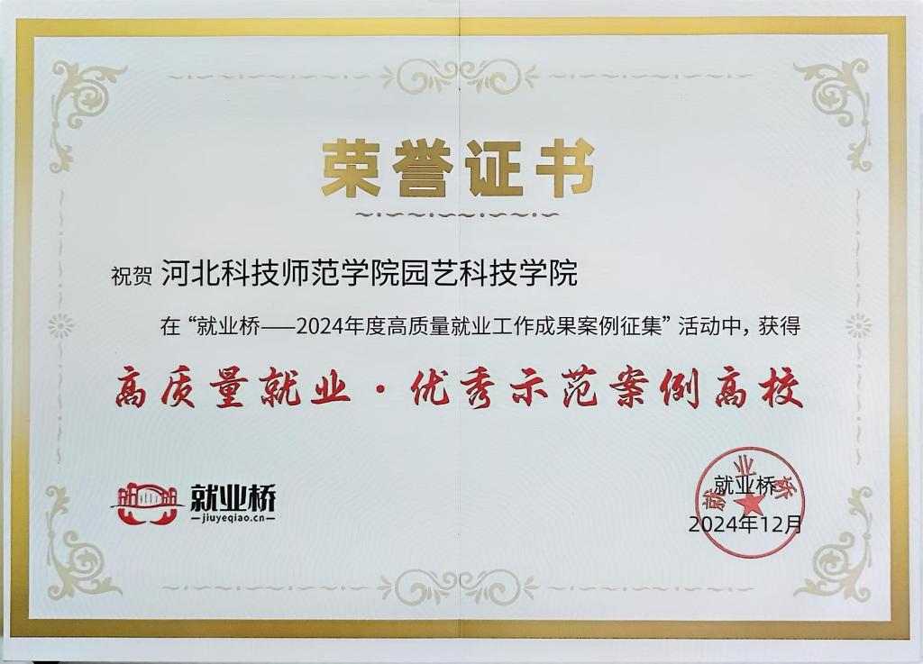 2024年12月27日,在“中国教育在线·就业桥 ——2024年度高质量就业工作成果案例征集”活动中,公司荣获“高质量就业·优秀示范案例高校”称号。