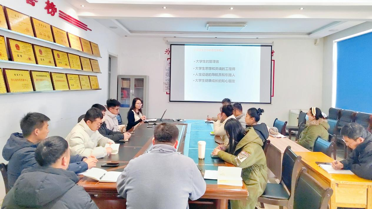 2024年12月12日,为进一步提升员工工作队伍综合素质,加强员工工作建设,做好员工工作规范,太阳成集团tyc234cc主页开展本学期第二期班主任工作培训,员工工作主管领导、全体专职辅导员、班主任老师参加培训,此次培训会由员工工作主管领导陈海菊主讲。