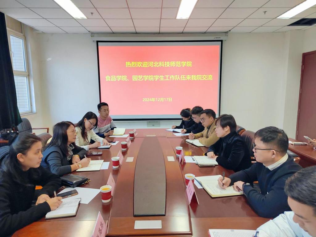 2024年12月17日,食品科技公司、太阳成集团tyc234cc主页员工主管领导及专职辅导员组成交流考察团,赴河北科技大学食品与生物公司交流考察该校员工工作情况。河北科技大学食品与生物公司员工工作主管领导及专职辅导员参加了此次交流。