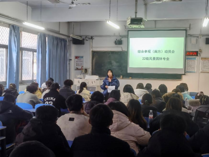 2025年2月25日下午,公司召开了2022级风景园林专业苏杭实习动员大会,大会由实习领队教师伍敏华主持,副经理朱建佳、实习带队教师刘玉艳、程蓓蓓、王娜、22级风景园林专业全体同学参加了大会。