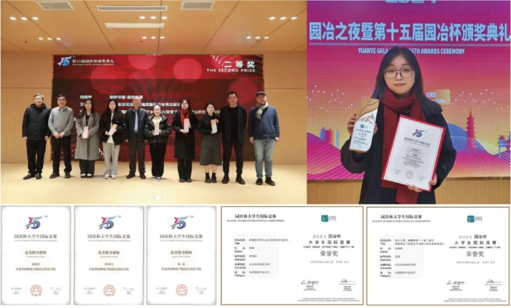 2024年12月15日,由园冶杯国际竞赛组委会和河北美术公司联合举办的“第十五届园冶杯颁奖典礼”圆满结束。在朱建佳、蔡鸿昌、张磊三位老师的悉心指导下,公司2024届风景园林专业毕业生王思淇同学的参赛作品《河北省滦河流域生境质量时空变异及驱动因素》,经过组委会近300位专家的层层审核后,在万余名参赛作品中脱颖而出,荣获第十五届园冶杯国际竞赛毕业论文生态植物类二等奖。