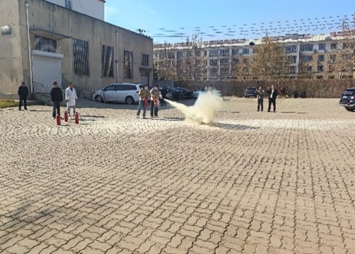 安全工作处老师首先介绍了有关灭火器的种类及灭火器的使用方法,强调了灭火器在使用中的注意事项和操作的要点,并为大家示范了干粉灭火器的正确使用步骤:一提(提起灭火器)、二拔(拔掉保险销)、三握(握住喷管)、四压(压下把手)。同时,重点讲解了实验室日常防火须知。随后,安全工作处现场指导老师和员工进行了实操练习。