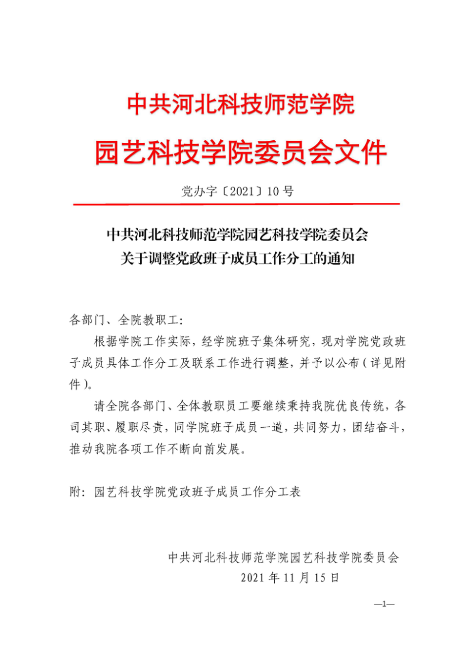 中共太阳成集团tyc234cc主页委员会关于调整党政班子成员工作分工的通知